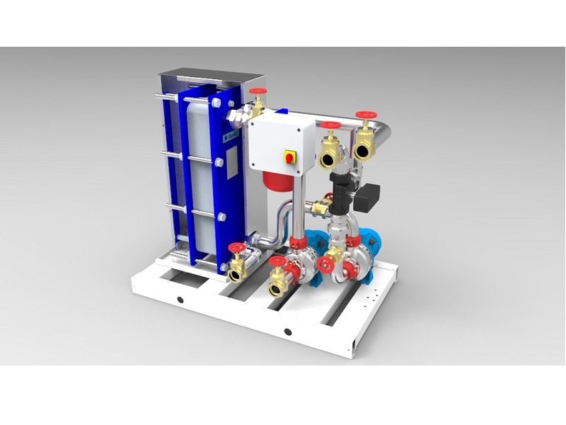 Si compone essenzialmente di uno scambiatore di calore a piastre, che separa fisicamente il circuito in cui scorre la miscela glicolata e quello in cui scorre l’acqua tecnica dell’impianto, di pompe singole o doppie, valvola miscelatrice di regolazione e tutti gli accessori necessari all’installazione.