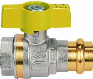 – Serie PRESSTIGE® di valvole a sfera: per acqua (leva verde, da ø15 a ø54) e gas (leva gialla, da ø15 a ø28)